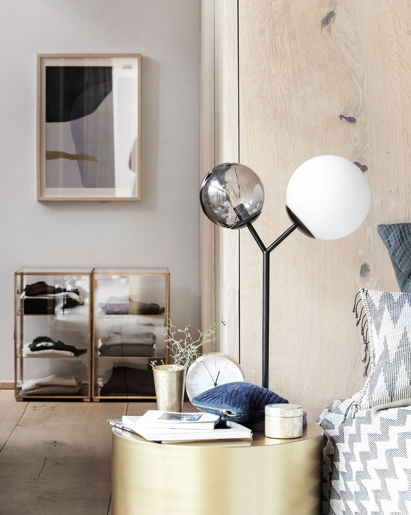 House Doctor Twice bordslampa är en slående kombination av form och funktion. Med sina två glaskulor, en i elegant svart och en i stilfullt vitt, ger denna lampa ett modernt och sofistikerat intryck. Den svarta järnfoten tillför en industriell känsla som enkelt smälter in i både klassiska och samtida hem. Perfekt att placera på en byrå, ett sidobord eller i sovrummet för att skapa en varm och inbjudande atmosfär. Lampan mäter 42 cm i höjd och använder en E14-lampa med max 40W. Eftersom den är handgjord kan små variationer i färg och form förekomma, vilket gör varje lampa unik. Torka av med en torr trasa för att bevara dess skönhet.