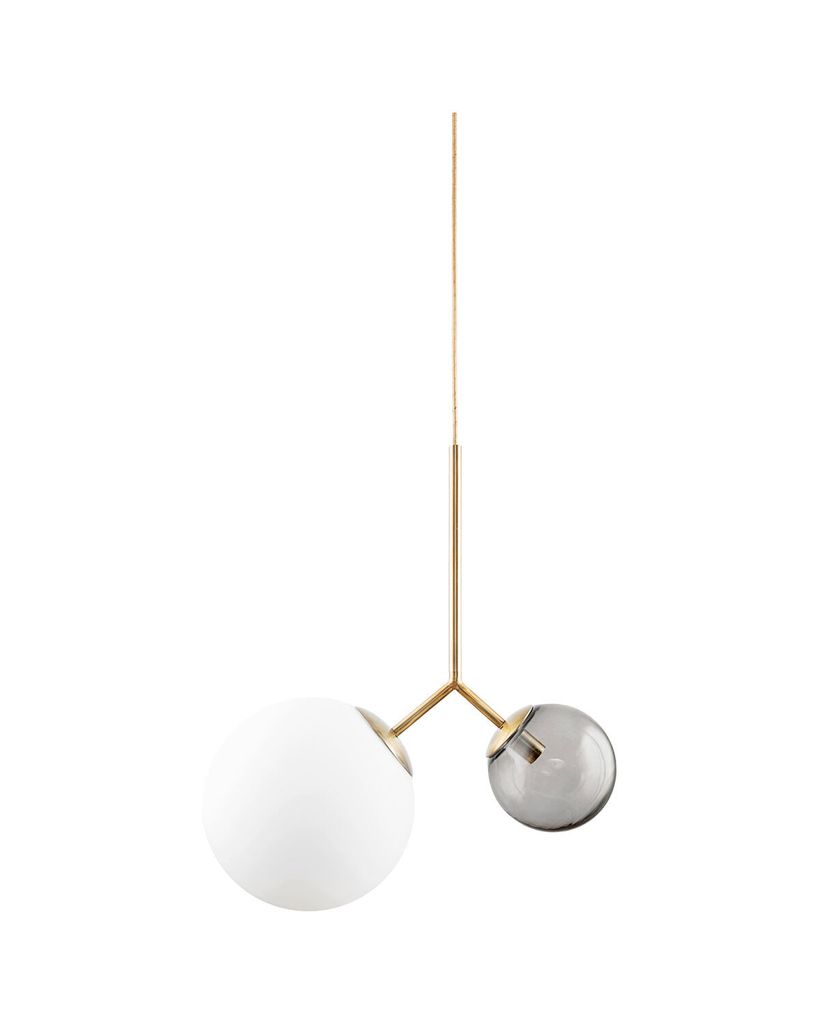 Lampor är viktiga element när du vill skapa en personlig och stämningsfull inredning. Med Twice från House Doctor får du en vacker taklampa med en elegant och snygg look i glas och metall. Lampan har en vacker asymmetrisk design som tillför karisma och mångsidighet till inredningen. Lampan har med sina mässingsdetaljer ett otroligt fint uttryck som både är rått och klassiskt på samma gång. Den kan användas i de flesta rum i hemmet - låt fantasin få fritt spelrum. Använd den i entrén, över matbordet eller i ett hörn av vardagsrummet och skapa ett underbart och unikt sken i inredningen. Den här produkten är handgjord, vilket innebär att en viss variation i färg, storlek och form kan förekomma. Mått: l.: 70 cm, 2,3 meter sladd. E14, 25W. per fattning. Torkas av med en torr trasa.