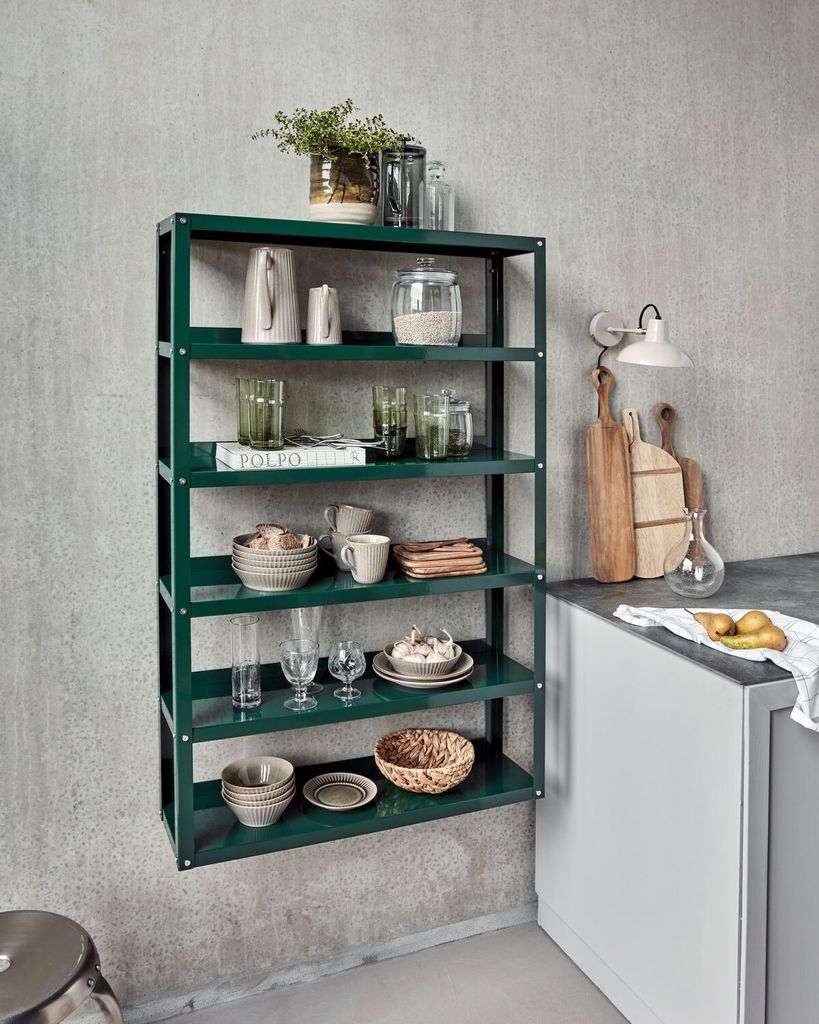 Elegant och funktionell hylla i mörkgrönt stål, perfekt för personlig inredning. Sex hyllor ger gott om plats för dina favoritsaker.