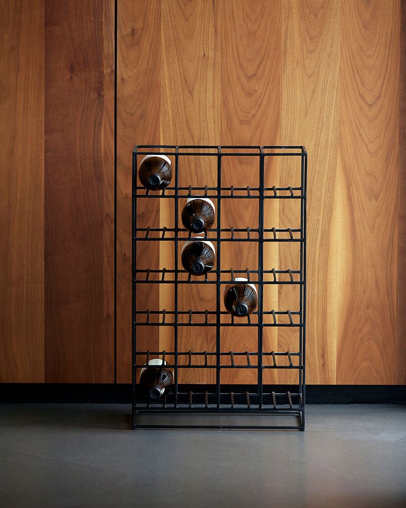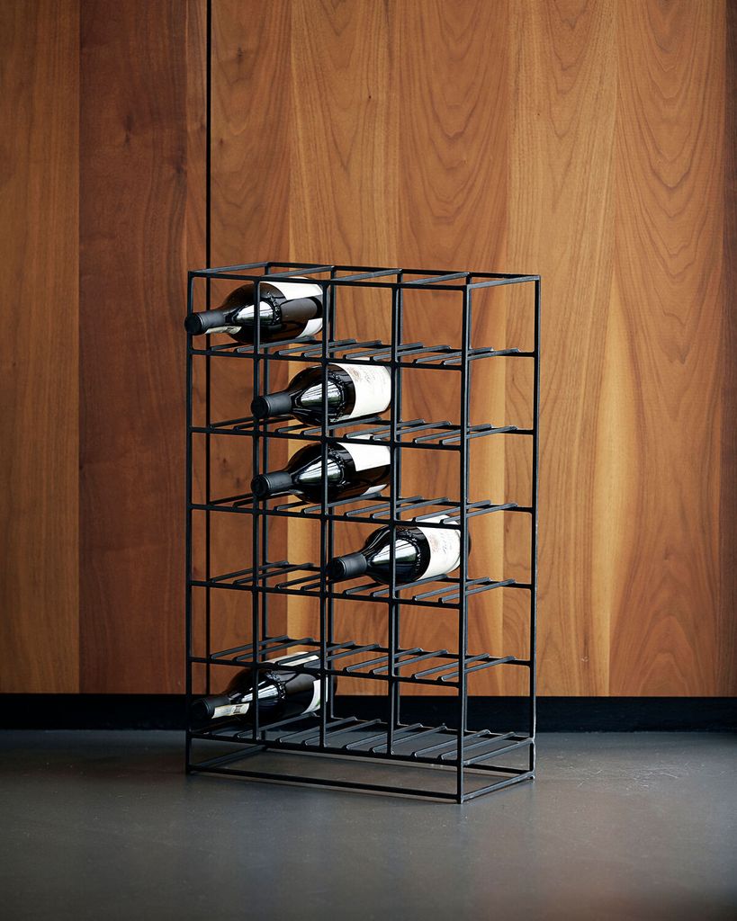 Stilrent vinställ i svart järn från House Doctor, för elegant och praktisk vinförvaring av 24 flaskor.