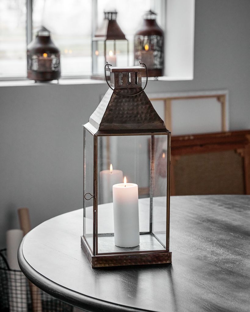 Vivi Lykta i antik mässing från House Doctor ger ditt hem en tidlös elegans. Handgjord i järn och glas, passar perfekt för att skapa en mysig atmosfär.