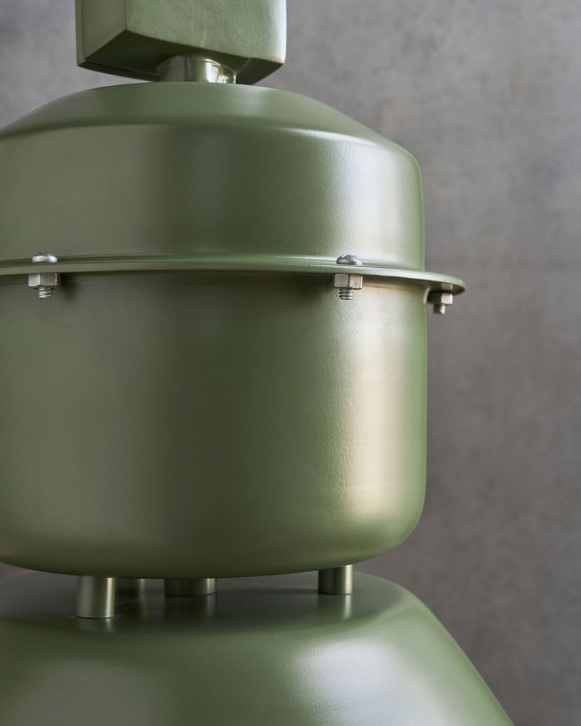 Den gröna Volumen-lampan från House Doctor ger ditt rum en industriell elegans med sitt mjuka ljus.