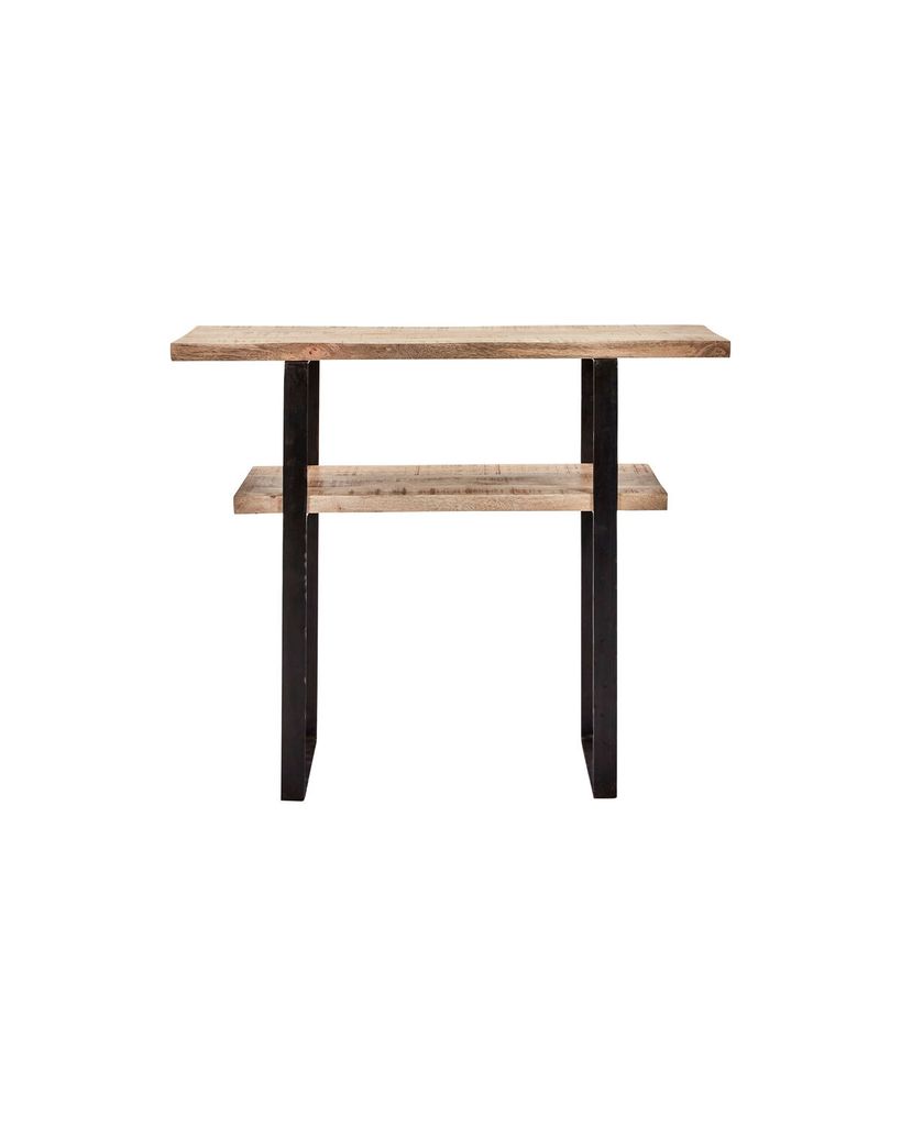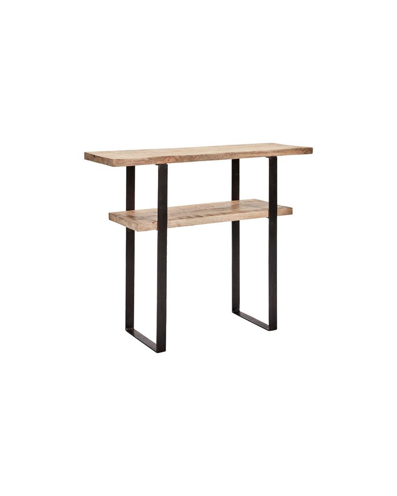 Stilrent konsolbord i ljust mangoträ med svart järnram. Perfekt för både stora och små utrymmen.