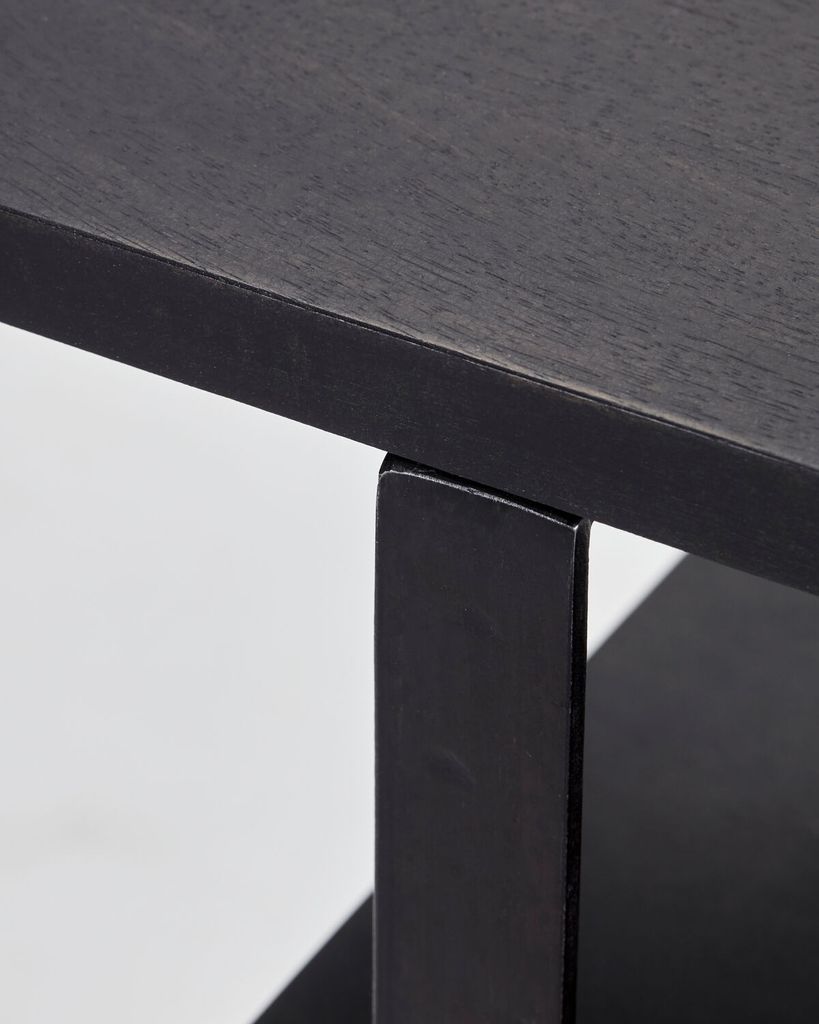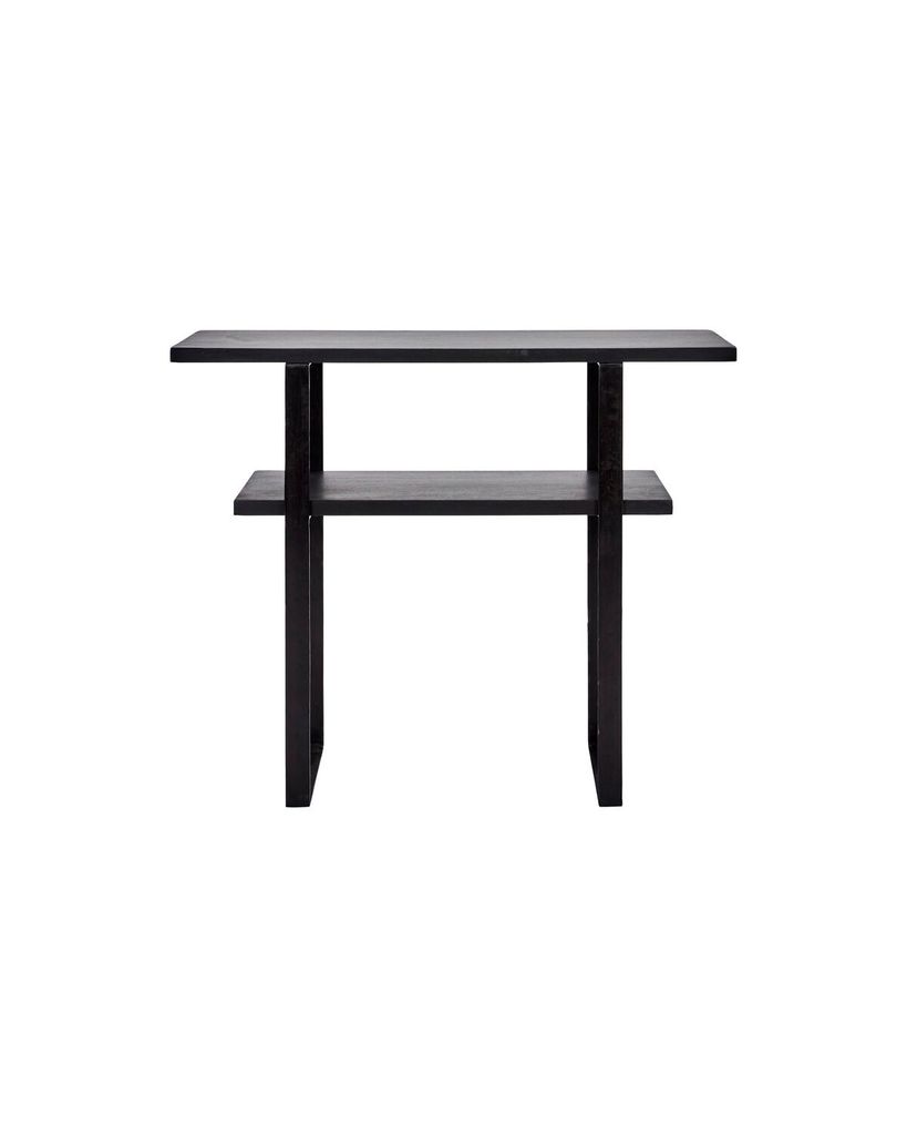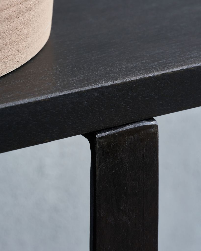 Elegant och tidlöst konsolbord i helsvart mangoträ och järn. Perfekt för alla hem.