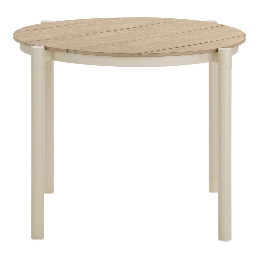 Bordet ger ett modernt intryck med sin runda form och rena linjer. Det är perfekt för att skapa en inbjudande matplats i trädgården eller på verandan, men fungerar lika bra i köket eller matsalen. Den diskreta färgpaletten i sand och natur gör att bordet enkelt kan matchas med olika stilar och färger på stolar och övrig inredning.