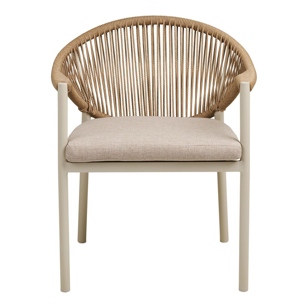 Elegant matstol i PE-rattan och aluminium med bekvämt polyesterdyna. Perfekt för stilfulla middagar.