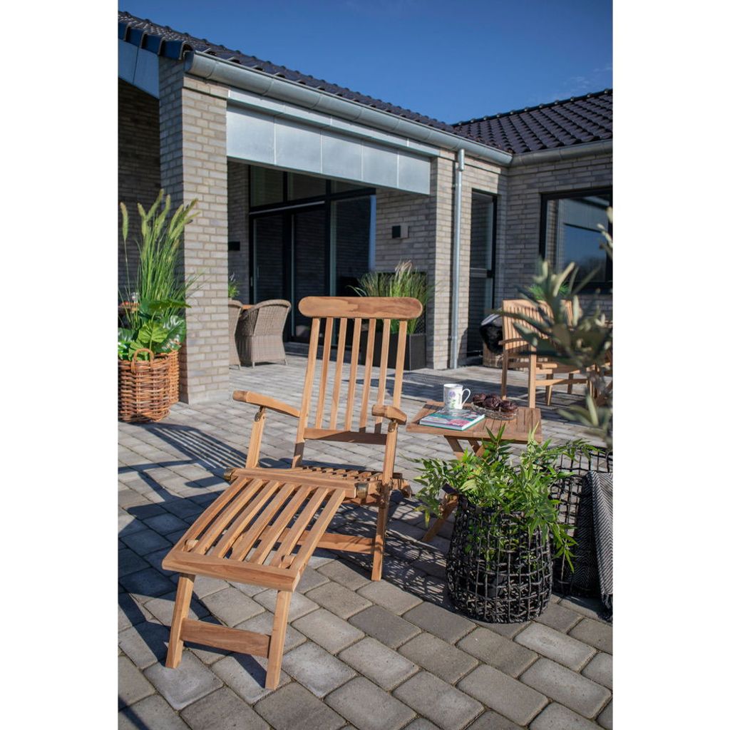 Njut av soliga dagar i stil med House Nordic Arrecife solstol, tillverkad i hållbar teak för utomhusbruk.