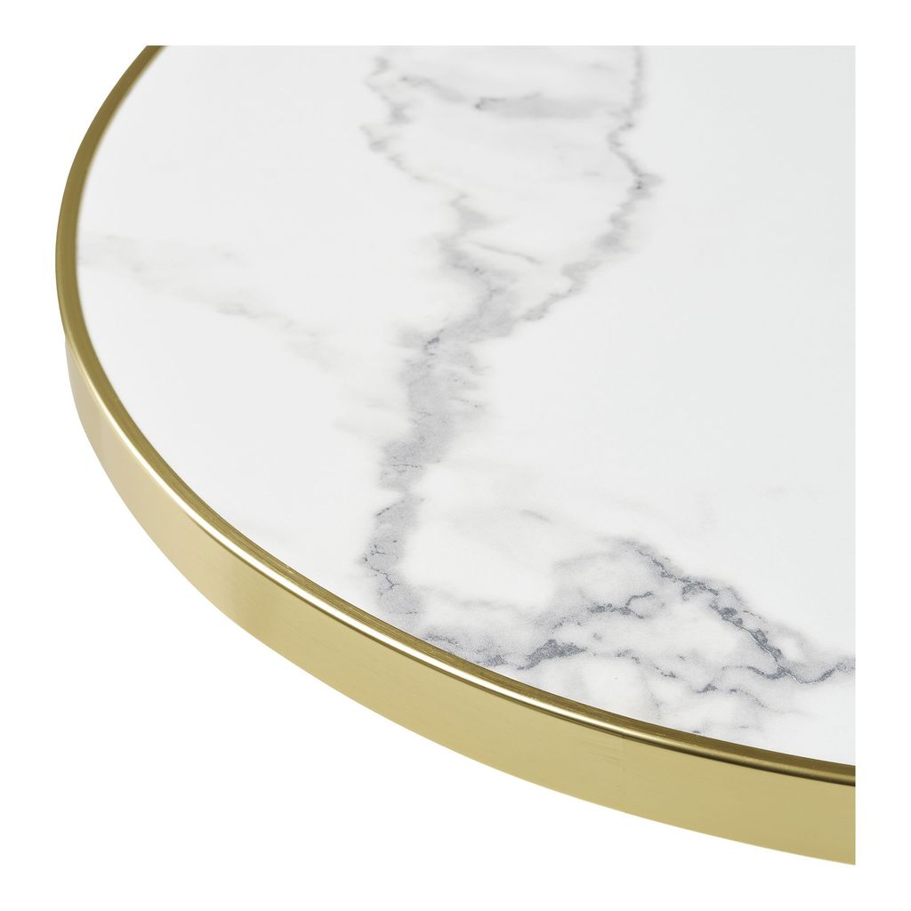 Elegant bistrobord i aluminium, perfekt för både inomhus- och utomhusbruk. Stilren design med vit bordsskiva och gyllene kant.