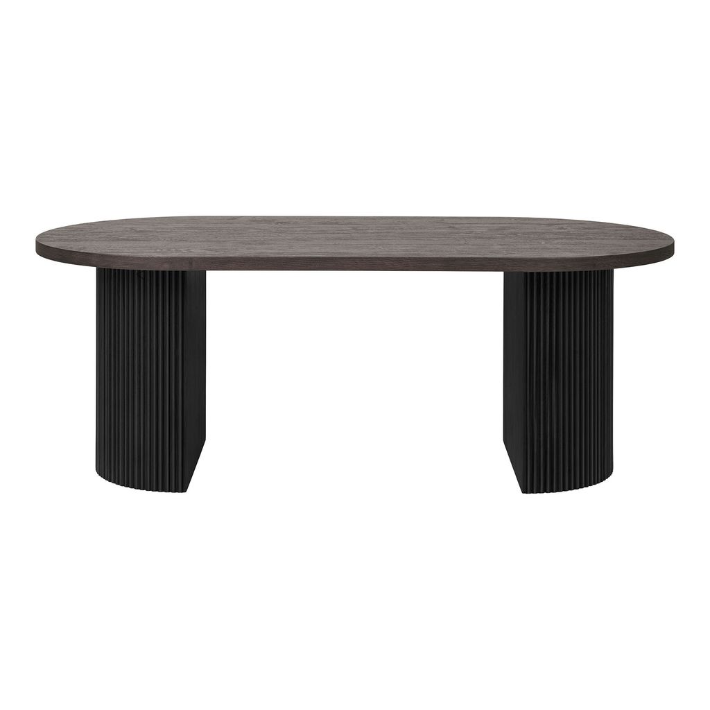 House Nordic Boavista Soffbord är en elegant möbel som kombinerar modern stil med funktionalitet. Bordsskivan i mörkbrunt MDF ger ett sofistikerat intryck, medan de unikt ribbade benen i svart ger en distinkt och modern känsla.
