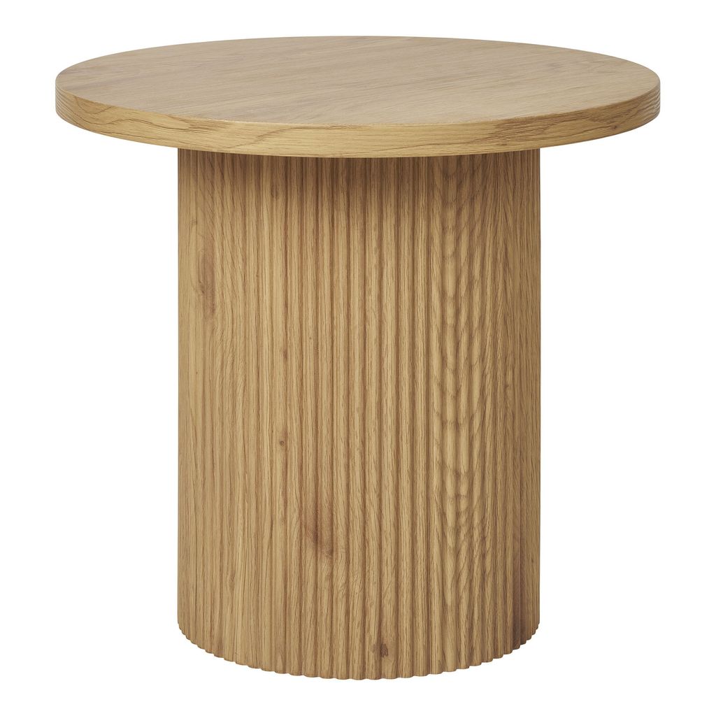 Designen kännetecknas av en modern ribbad textur som ger bordet en unik karaktär och känsla. Den runda formen och den naturliga färgen gör det enkelt att matcha med alla typer av inredning.