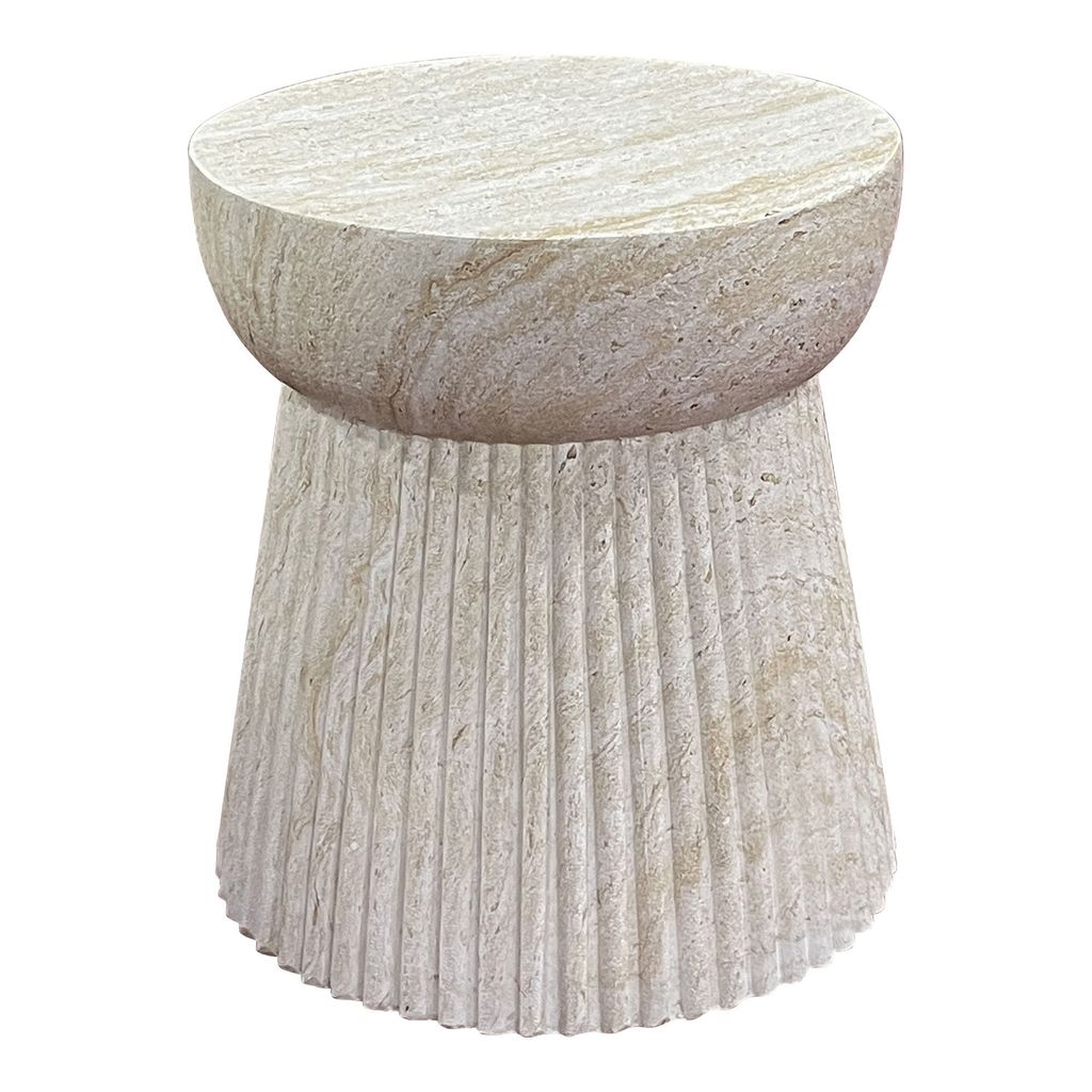 Elegant sidobord i naturligt MgO och glasfiber, perfekt för både inomhus- och utomhusbruk.