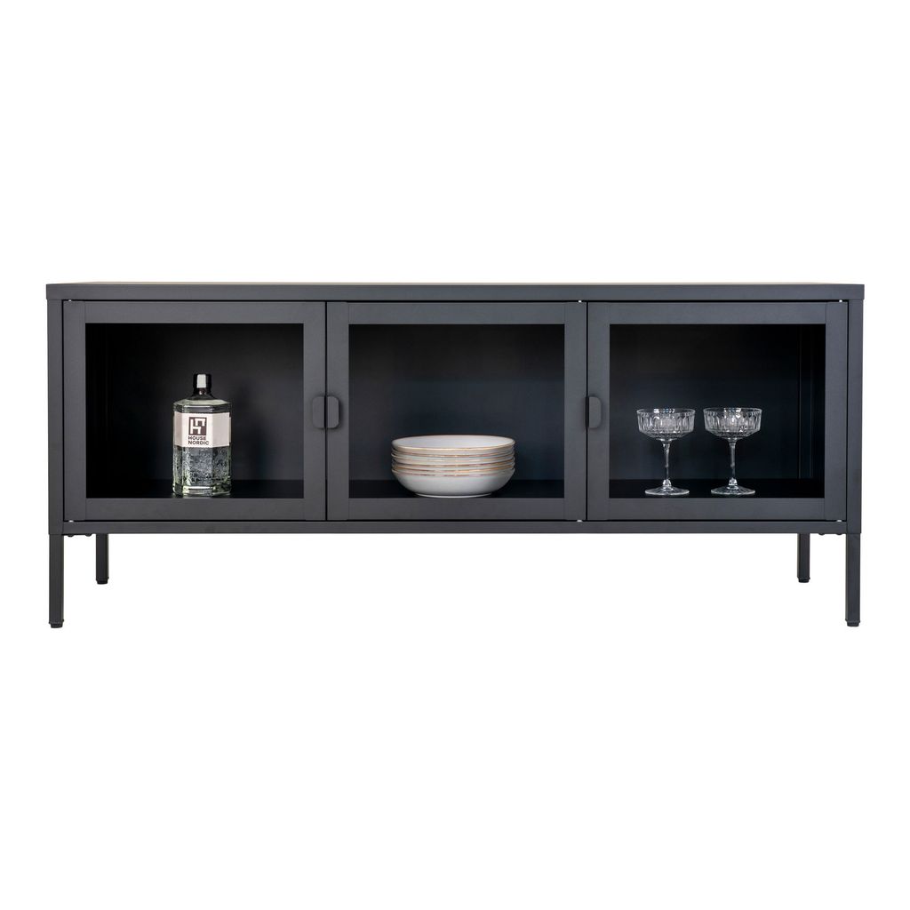 House Nordic Brisbane TV-bänk är en stilren och funktionell möbel som kombinerar modern design med praktisk förvaring. Tillverkad i högkvalitativt svart stål och klart glas, erbjuder denna TV-bänk både hållbarhet och estetik.