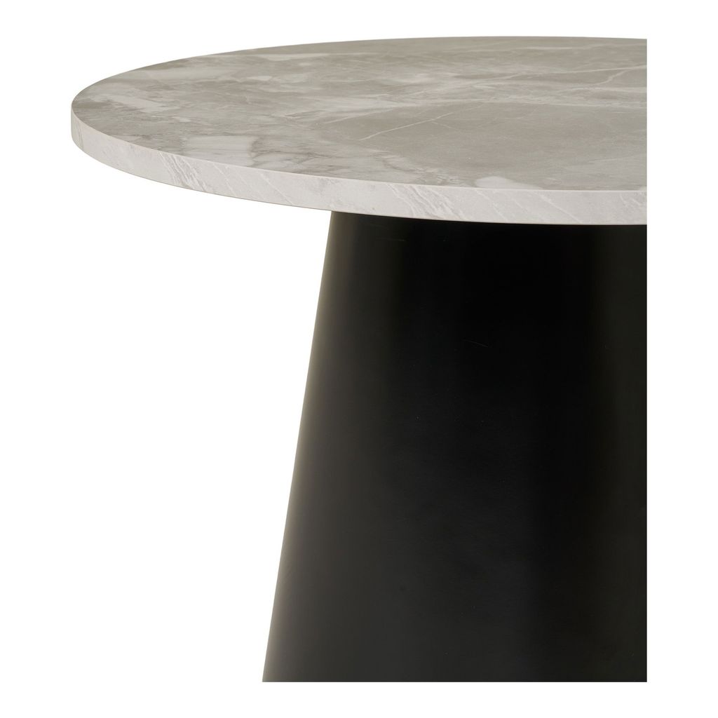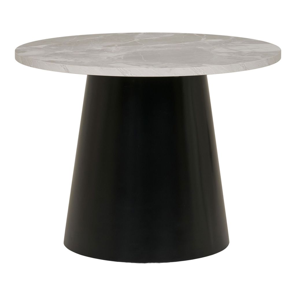 Detta eleganta soffbord från House Nordic kombinerar modern estetik med funktionell design. Med en rund topp i grå marmorerad melamin och en konisk svart stålfot blir det en stilfull mittpunkt i ditt vardagsrum.