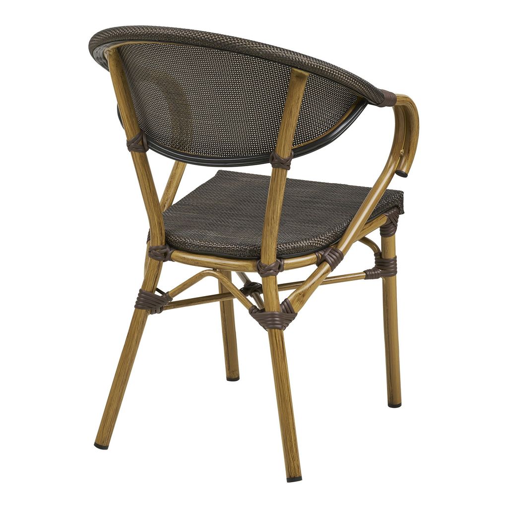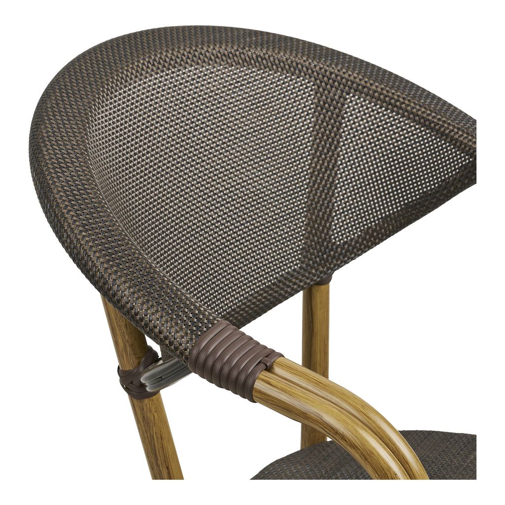 Elegant matstol med textilene och aluminium i mörkbrun färg. Perfekt för både inomhus och utomhusbruk.