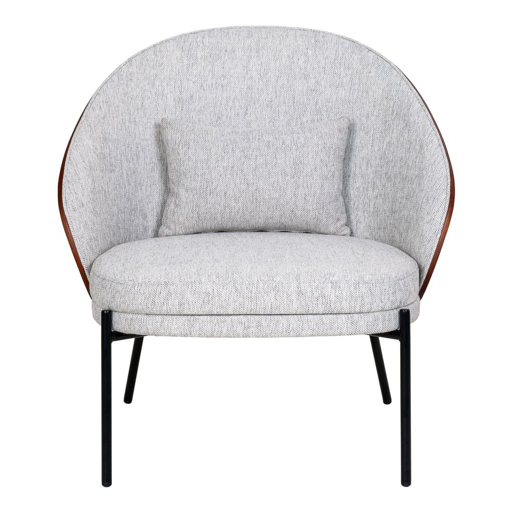 Elegant loungestol i ljusgrå polyester och mörkbrunt MDF, perfekt för moderna hem.