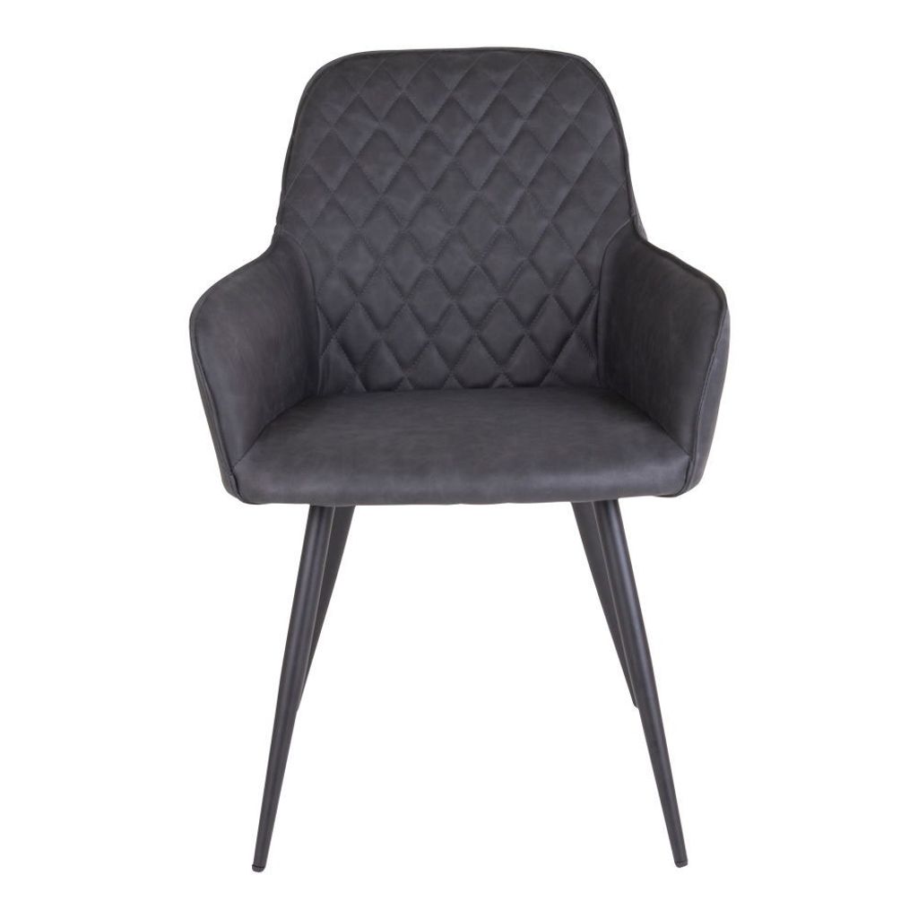 Elegant matstol i grått PU-läder med stålkonstruktion, perfekt för moderna hem.