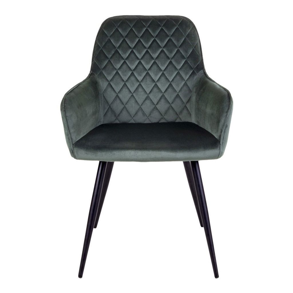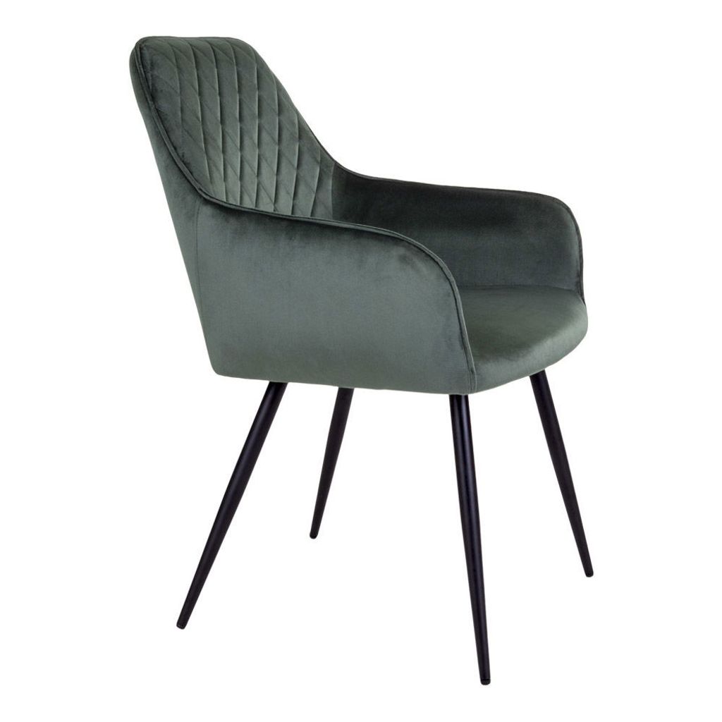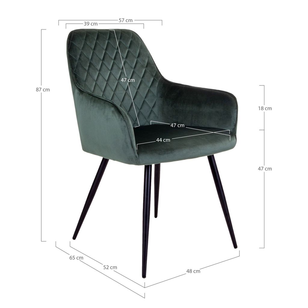 House Nordic Harbo Matstol i grön är en elegant och bekväm stol som kombinerar modern design med högkvalitativa material. Den lyxiga sammeten ger en mjuk och inbjudande känsla, medan de robusta stålbenen ger en stabil och hållbar konstruktion. Den diamantformade sömmen på ryggstödet ger en stilren touch som passar perfekt i varje matsal eller kök.