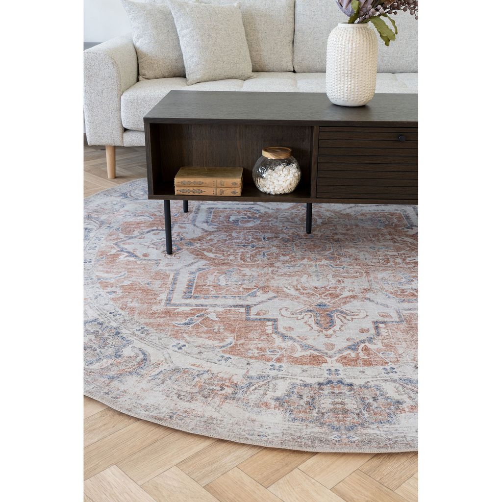 Njut av stil och komfort med House Nordic Havana Matta, en rund 200 cm matta i chenille polyester med blå och orange toner.