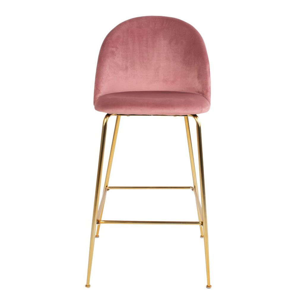 House Nordic Lausanne Barstol i färgen Rose kombinerar elegans med modern design. Den är klädd i mjukt sammetstyg som ger en lyxig känsla och har en robust stålkonstruktion i guldton, vilket ger både stil och stabilitet.