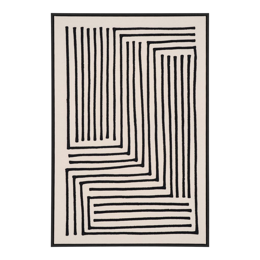 Upptäck en elegant och modern touch till ditt hem med House Nordic Lipari Canvas Print. Detta konstverk mäter 60x90 cm och är präglat av ett stilrent geometriskt mönster i svart på en beige bakgrund, vilket skapar en sofistikerad atmosfär i vilket rum som helst. Perfekt för att komplettera en modern inredning, denna canvas är uppbyggd på en solid MDF-ram och är klädd i högkvalitativt bomullsmaterial.