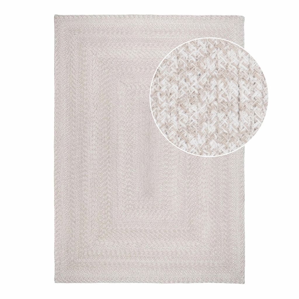Elegant och hållbar matta i återvunnen PET med sandfärgad ton, perfekt för både inomhus- och utomhusmiljöer.