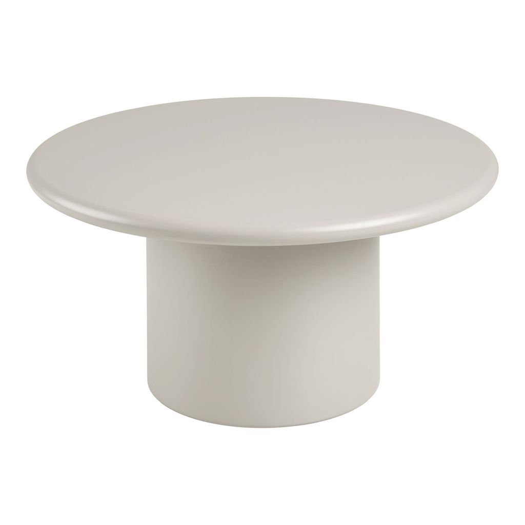 Elegant soffbord i sandfärgad MDF med rundad design, perfekt för moderna vardagsrum.