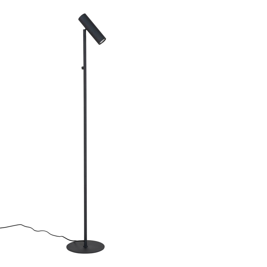 Elegant svart golvlampa i stål med justerbar lamphuvud, perfekt för modern inredning.
