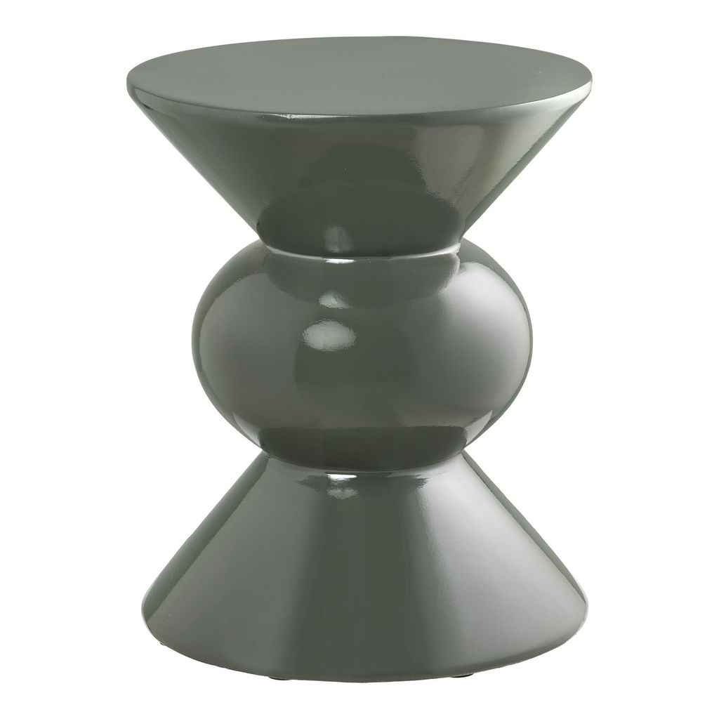 Elegant grönt sidobord i glasfiber, ready för användning direkt. Perfekt för moderna hem.