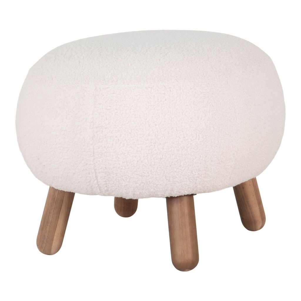 Elegant fotpall i vit polyester med robusta träben, perfekt för stil och komfort i ditt hem.