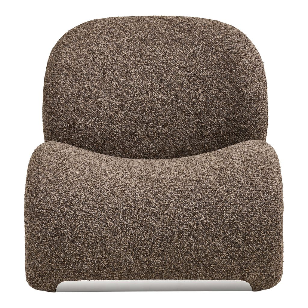 Stolens mjuka bruna polyester ger ett sofistikerat intryck som kompletterar alla färgscheman. Dess unika böjda form skapar en iögonfallande silhuett, perfekt för både avkoppling och stil. Placera den i vardagsrummet för en modern touch eller i läshörnan för en bekväm sittupplevelse.