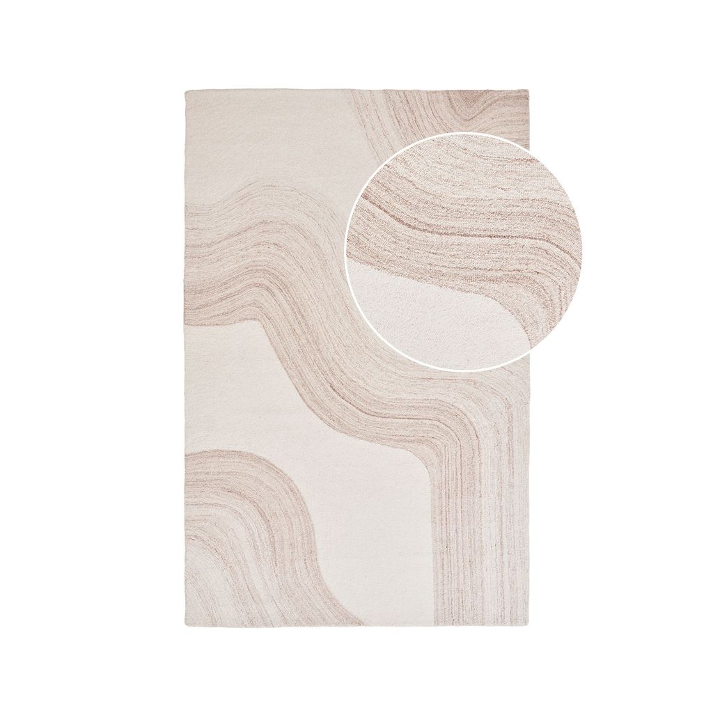 Elegant matta i ljusbrun och elfenben, tillverkad av 100 % ull och färdigmonterad för enkel användning.