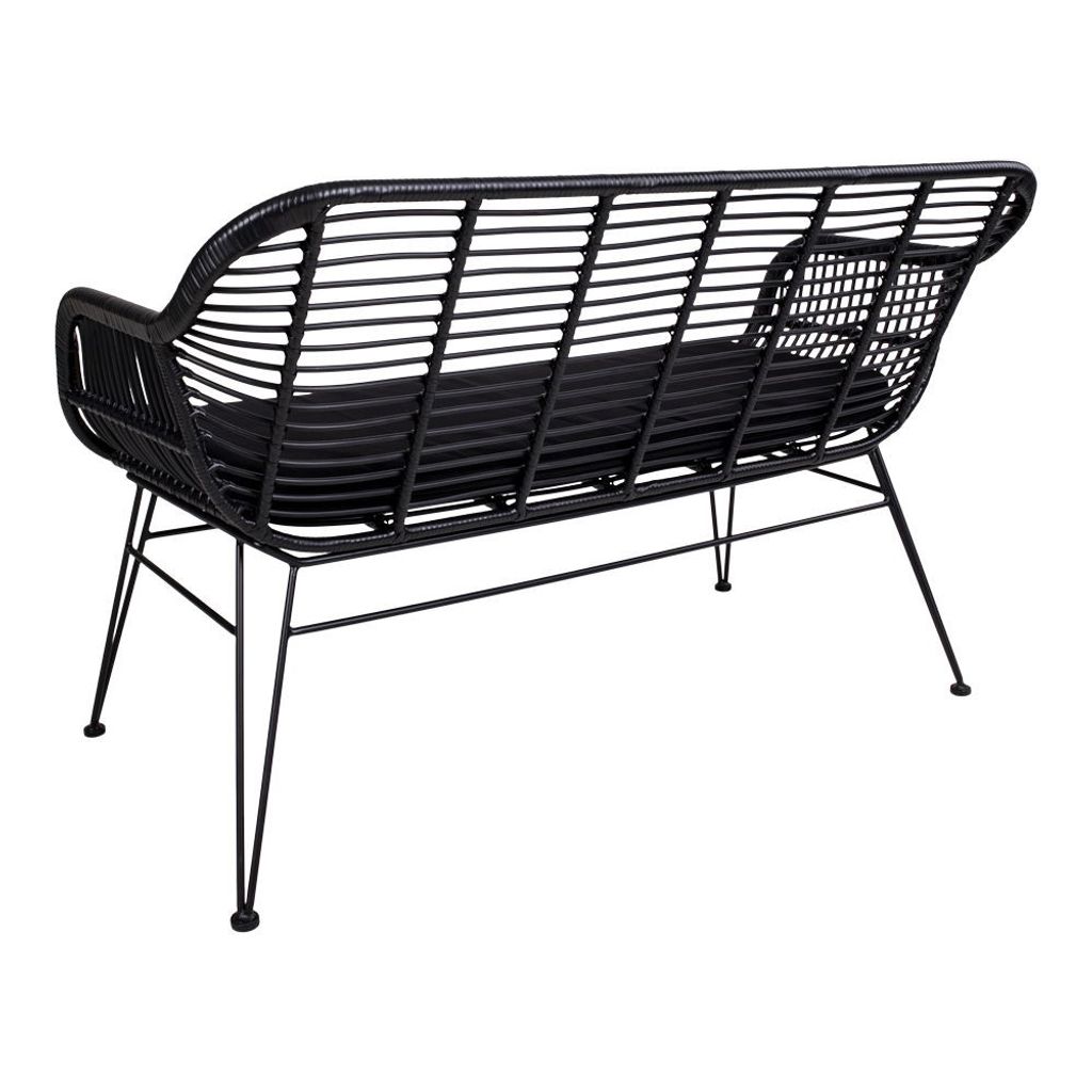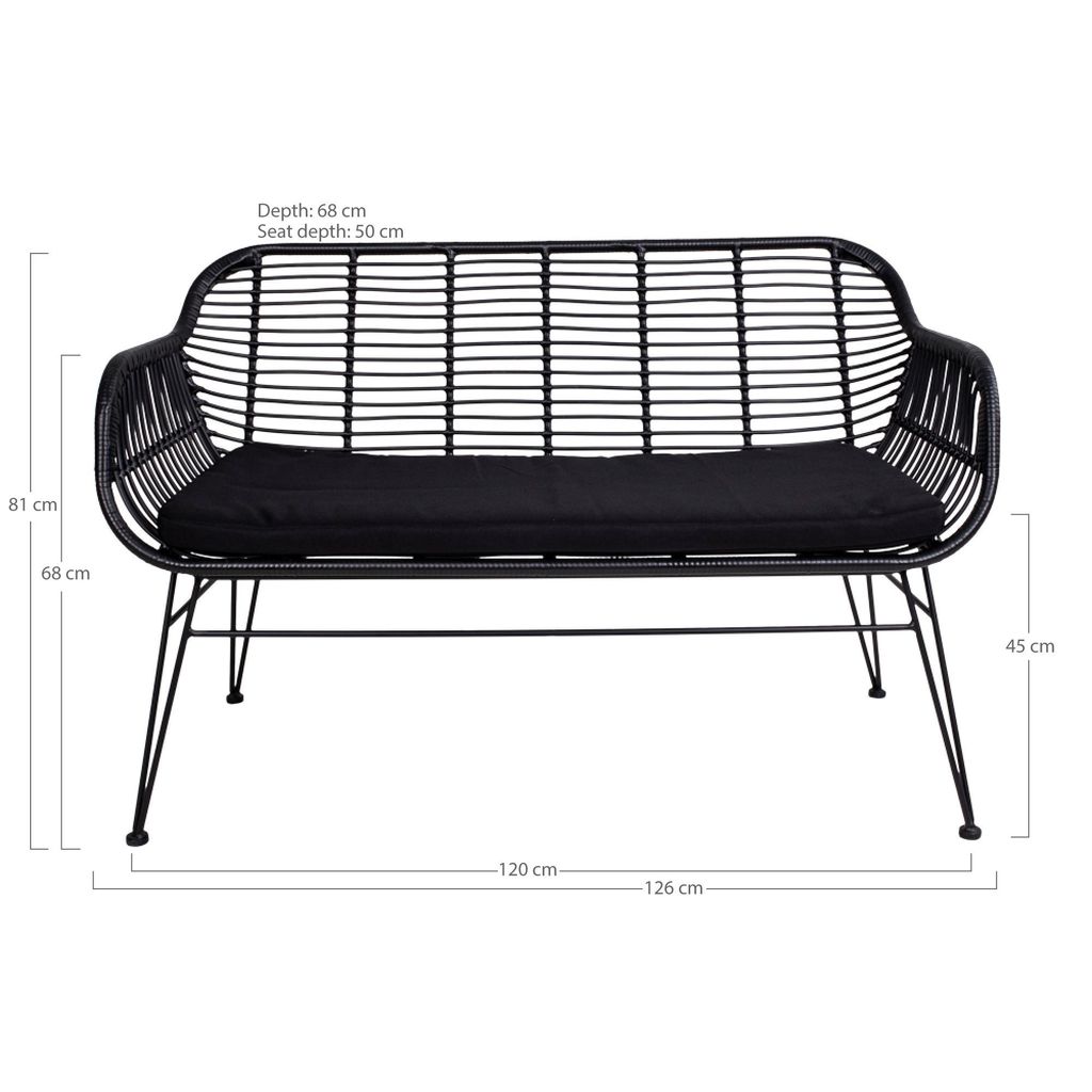 Elegant svart soffa i PE rotting och stål, perfekt för både inomhus- och utomhusbruk.