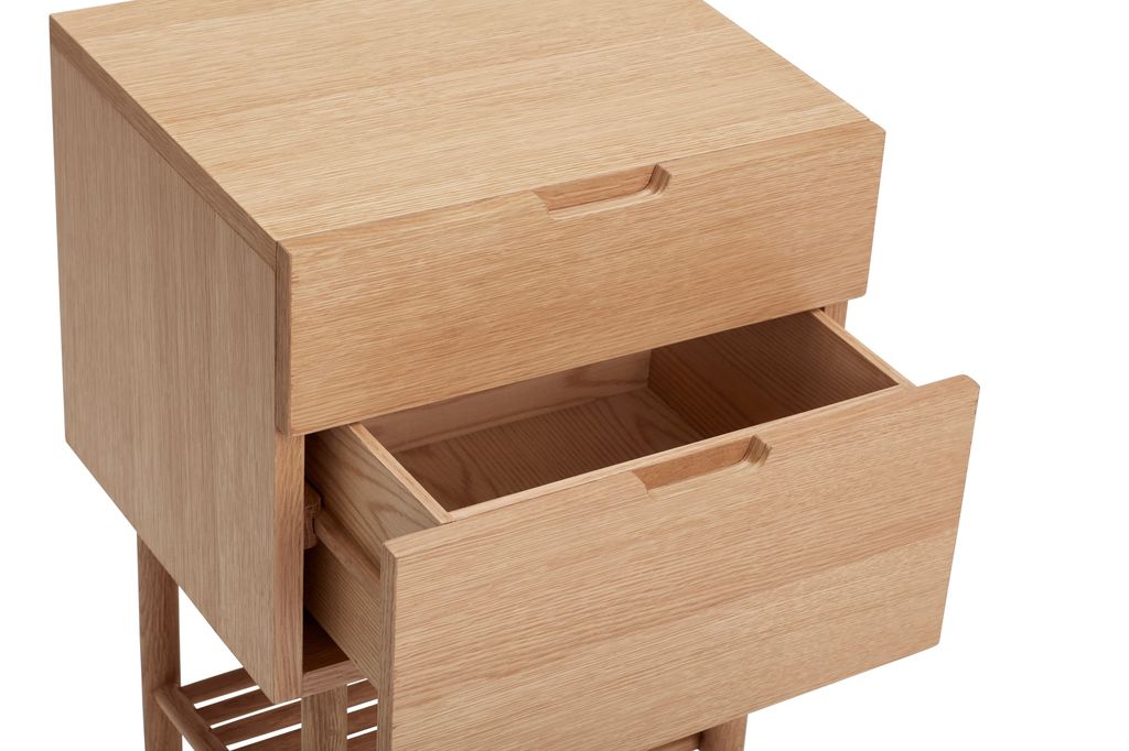 Den tidlösa designen med rena linjer och släta ytor gör det enkelt att kombinera med andra möbler. Bordet har en praktisk låda som ger gott om förvaringsutrymme för dina nattliga tillbehör som böcker, glasögon och andra småsaker.