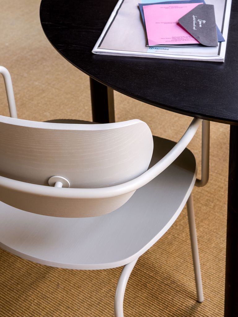 Förhöj ditt matrum med Arch Matstol i ljusgrått. Modern design, FSC-certifierade material och stapelbar för enkel förvaring.