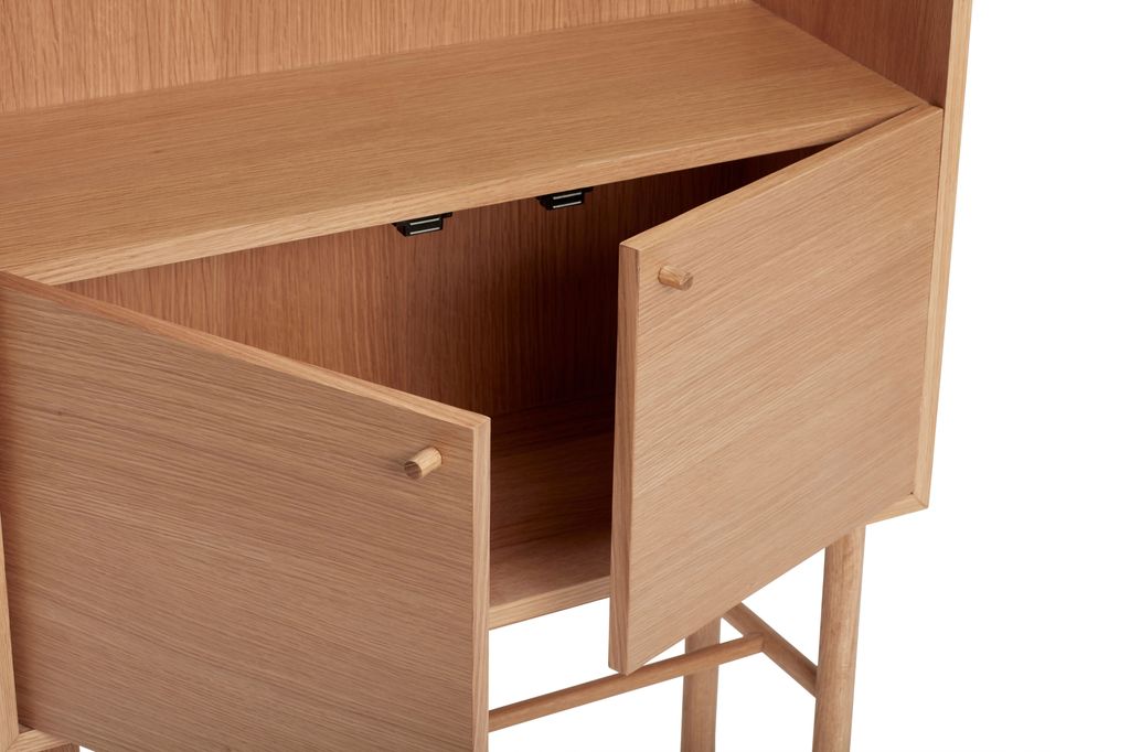 Denna hylla är utrustad med två rymliga skåp och öppna hyllplan, idealisk för att visa upp böcker, dekorativa föremål eller förvara personliga tillhörigheter. Dess minimalistiska design gör den lätt att integrera i olika inredningsstilar, från modern till skandinavisk.