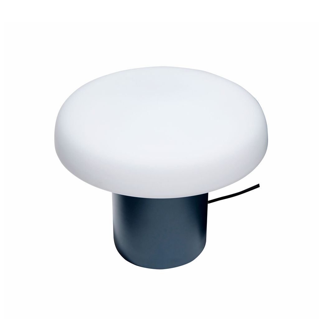 Elegant bordslampa med mörkblå bas och opal vit lampskärm. Perfekt för skrivbord eller stämningsbelysning.