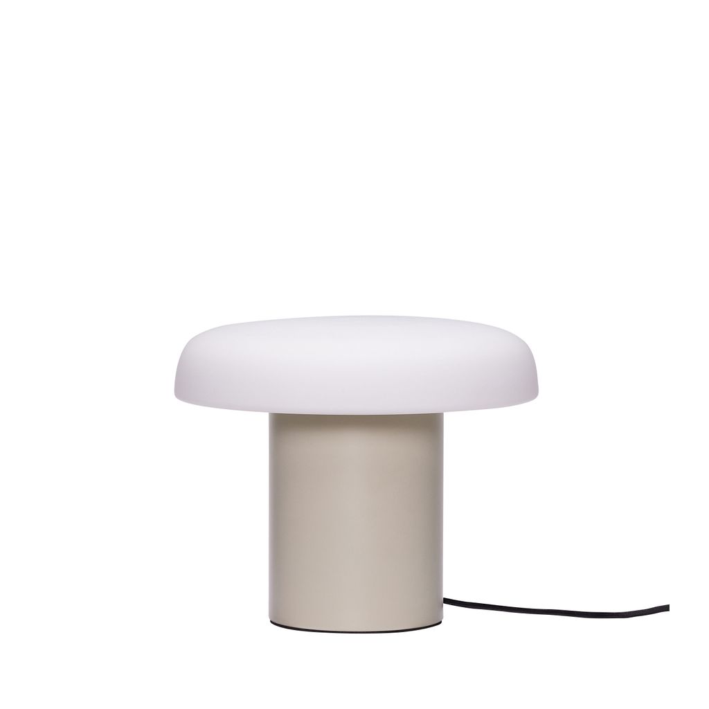 Denna Ateliers bordslampa kombinerar en charmig svampdesign med en sandfärgad bas och mjuk opalnyans, vilket skapar en inbjudande atmosfär.