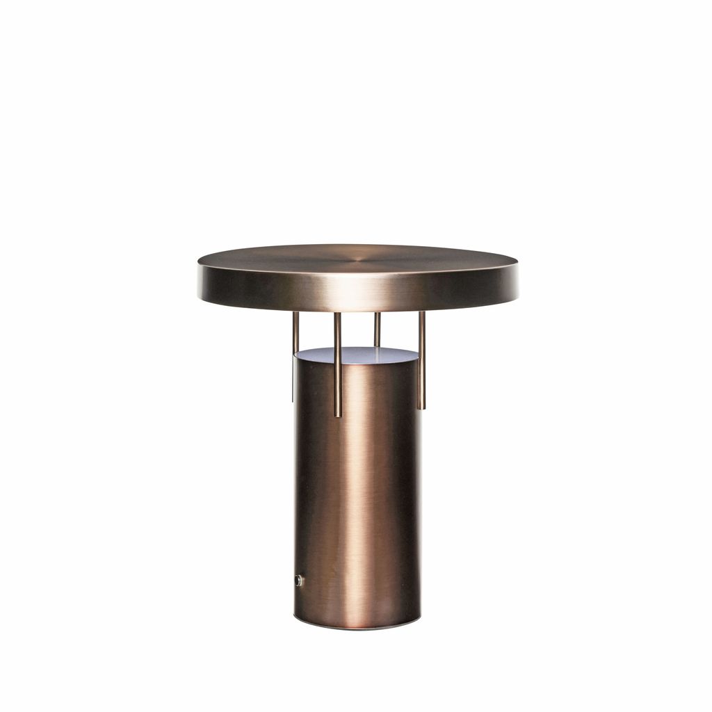 Elegant portabel lampa i brunerad mässing från Hübsch, med sju färglägen och upp till 10 timmars belysning.