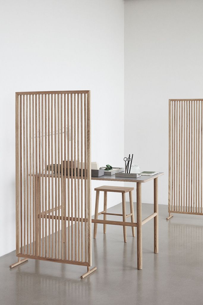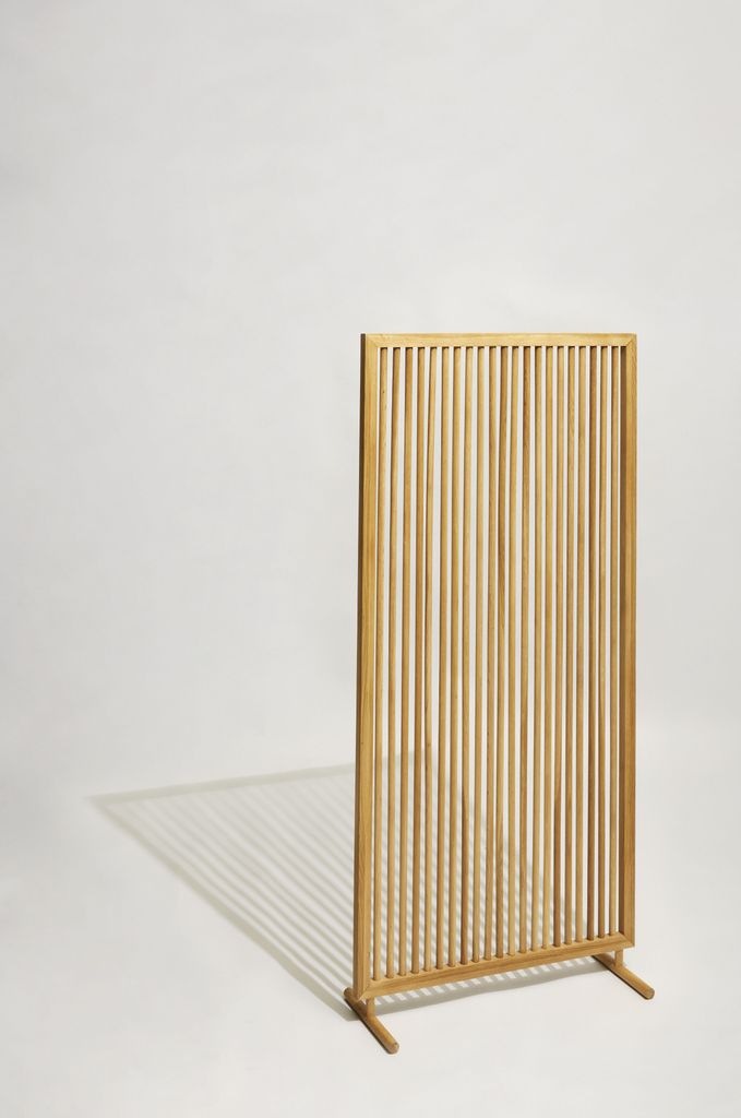 Elegant rumsavdelare i naturlig ek med stilren design, perfekt för att skapa avskildhet med charm.