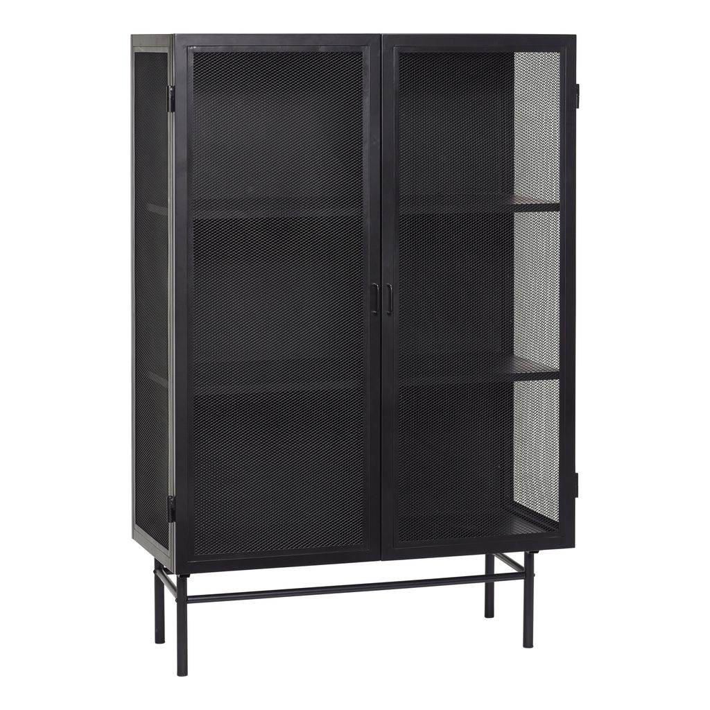Uppgradera ditt hem med det Hübsch Edge Cabinet Double i elegant matt svart järn. Det här stora skåpet erbjuder riklig förvaring bakom sin stilrena gallerdesign, vilket gör det till en iögonfallande del av ditt rum.