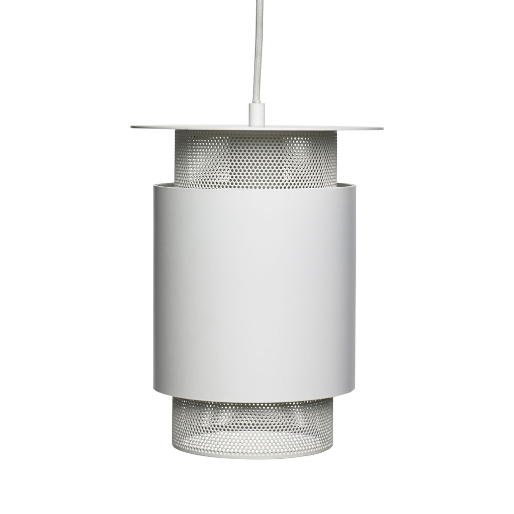 Elegant cylinderformad taklampa i vit metall, perfekt för att skapa stil och komfort i vilket rum som helst.