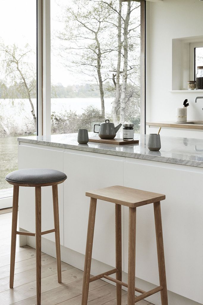 Elegant barpall i massivt ekträ med modern design och naturlig finish, perfekt för stilfulla hem.