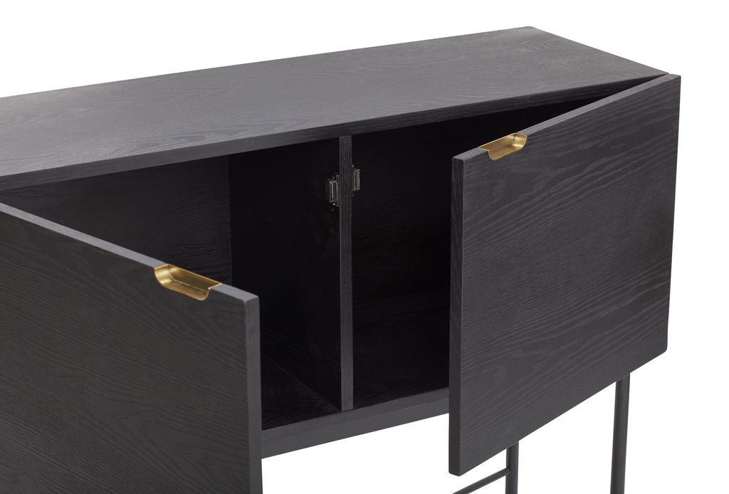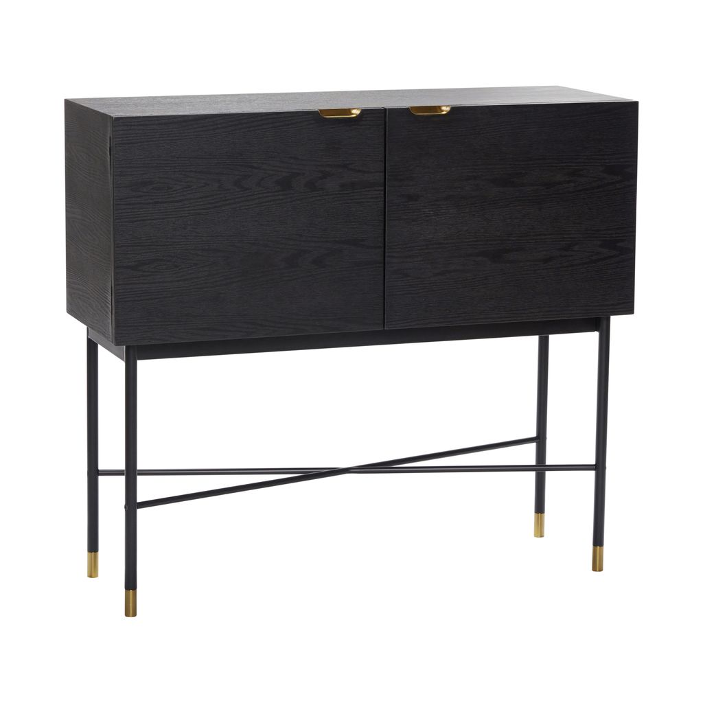 Upptäck Hübsch Norm Konsolbord Svart, en tidlös och elegant möbel som förhöjer stilen i vilket rum som helst. Bordet är tillverkat av FSC-certifierat askträ, vilket garanterar både hållbarhet och kvalitet. Den svarta finishen tillsammans med mässingsdetaljer ger ett klassiskt och sofistikerat utseende.