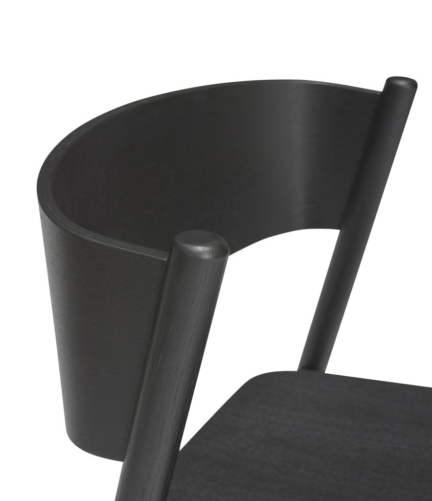 Upptäck Hübsch Oblique Matstol, en kombination av modern design och hållbarhet. Tillverkad av FSC®-certifierad ek med en elegant svart lack, erbjuder denna stol både stil och funktionalitet för ditt hem.
