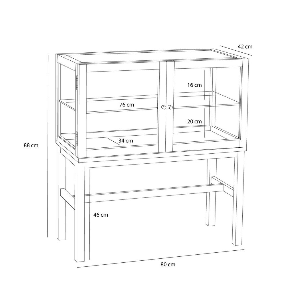 Med en storlek på 80x40xh88cm, erbjuder den generöst utrymme för att visa upp dina älskade föremål. Dessutom har displayboxen en smart design med dubbeldörrar och diskreta knoppar för enkel åtkomst.
