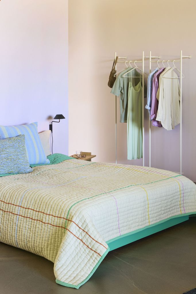 Elegant överkast i sandfärg med handquiltad textur, tillverkat i OEKO-TEX-certifierad bomull, idealiskt för en sofistikerad inredning.