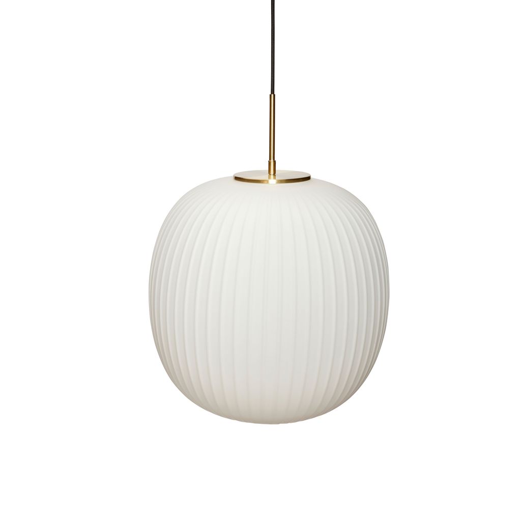 Elegant taklampa i vitt opalglas och mässing, perfekt för att skapa en lugn och sofistikerad atmosfär i ditt hem.