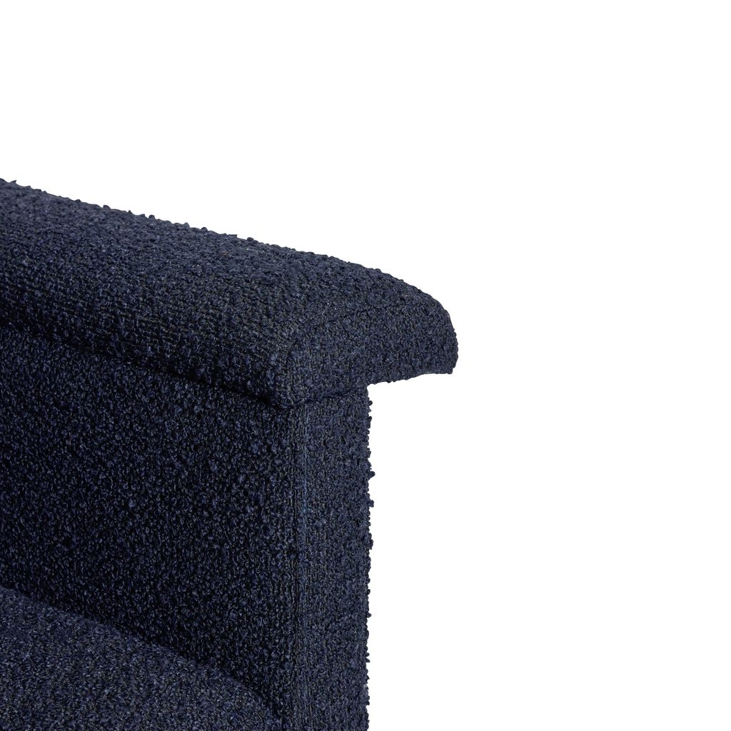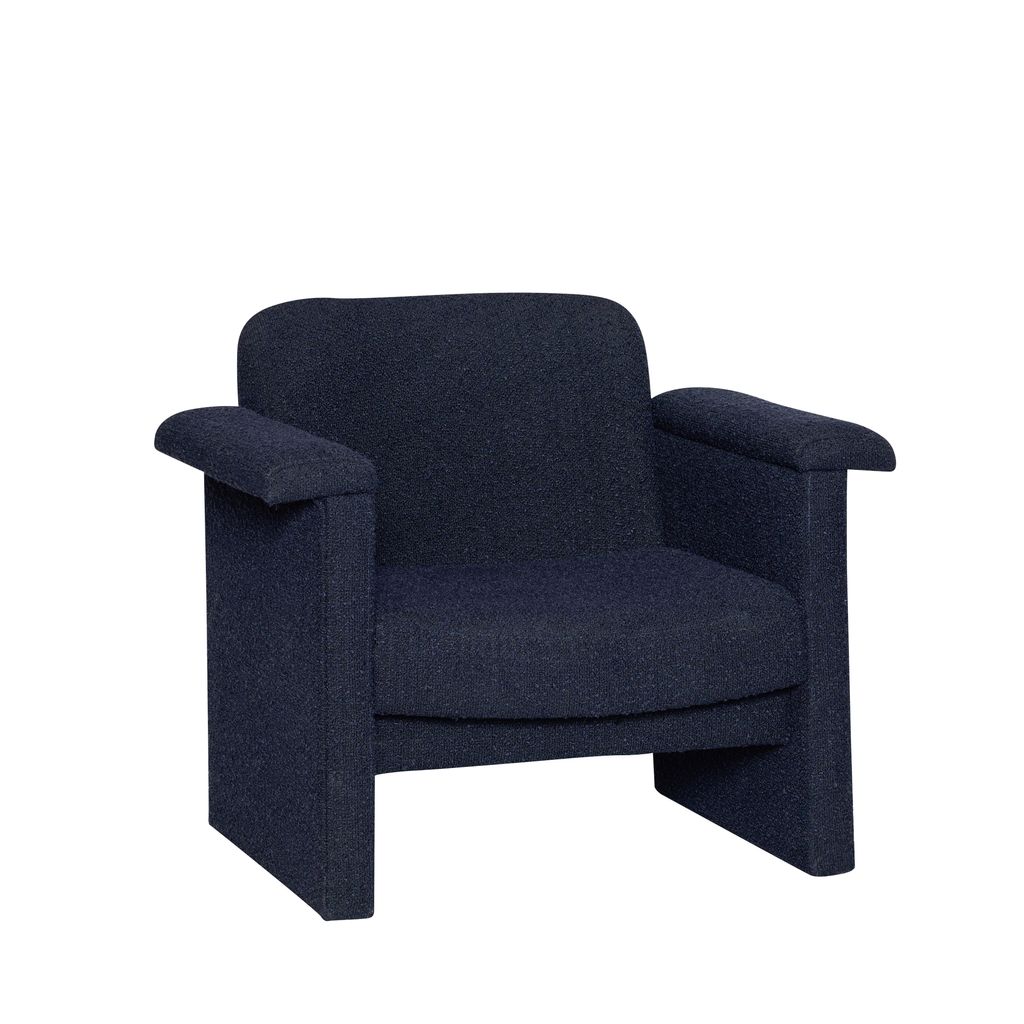 Den Hübsch Softy Lounge Chair i mörkblått är en perfekt kombination av estetik och komfort. Klädd i lyxigt bouclétyg, erbjuder denna fåtölj en mjuk och inbjudande plats för avkoppling. Den harmoniska mörkblå nyansen smälter vackert in i alla rumsmiljöer, vilket gör den till ett elegant tillskott i ditt hem.