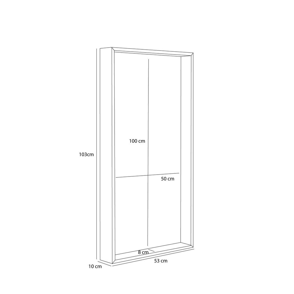 Med en storlek på 53x10xh103cm och en vikt på 11 kg, är detta en hållbar och praktisk spegel för ditt hem. Dess naturliga färg och material som MDF, spegelglas och ekträ ger en elegant touch till varje rum.