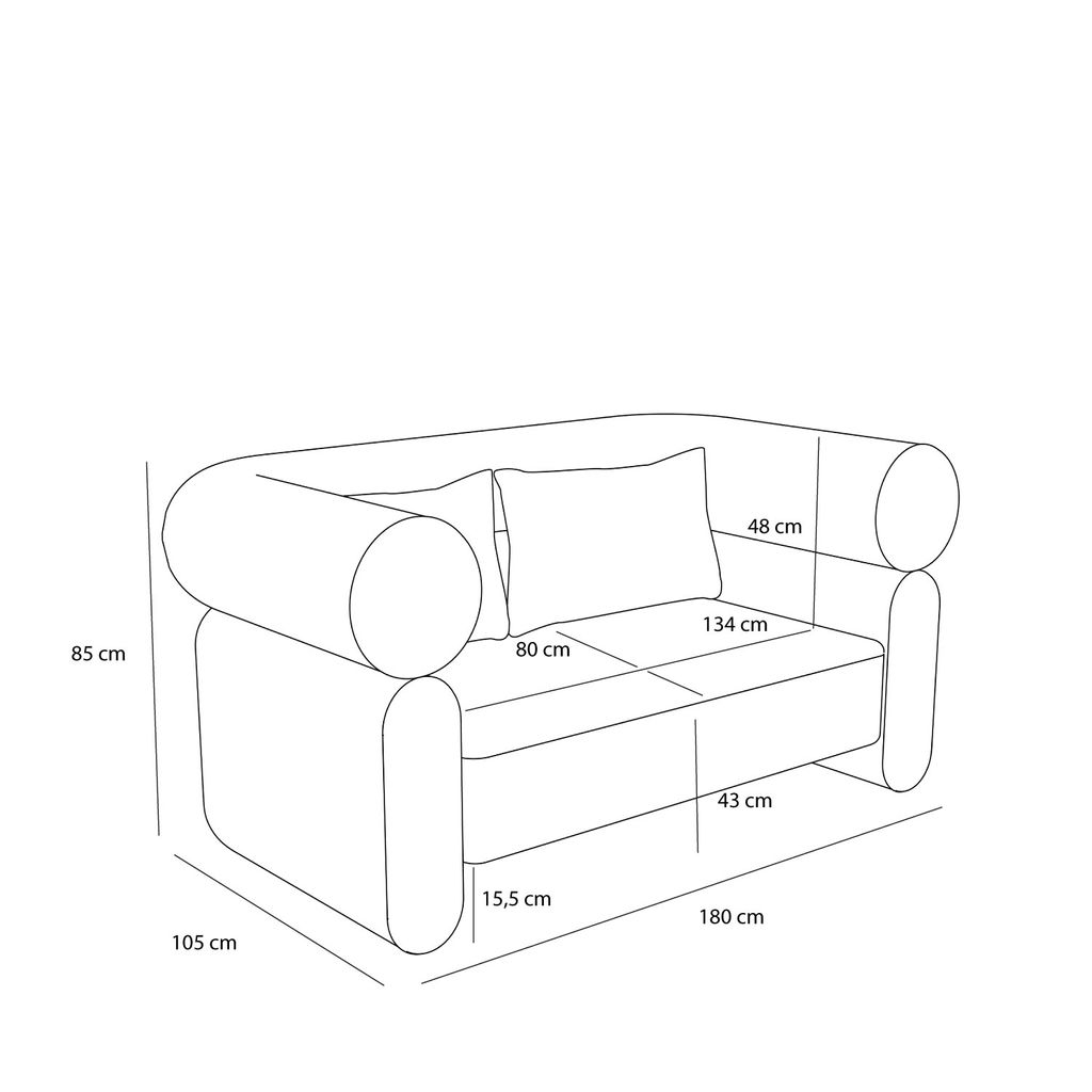 Med måtten 180x105xh85cm är Vera Soffa perfekt för att skapa en mysig och lekfull atmosfär i ditt hem, idealisk för att kura ihop sig och njuta av stilfullt slappande.
